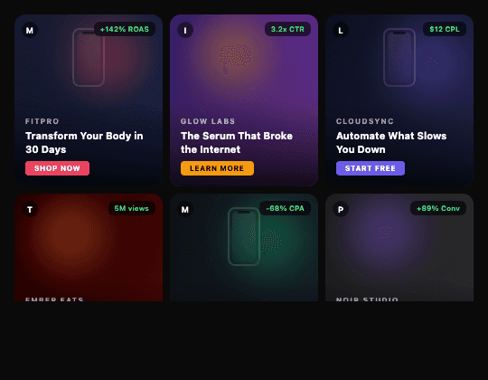Thumb-stopping ads for Meta, TikTok, YouTube, and beyond. We produce 100+ variations per campaign at a fraction of traditional cost and timelines. You bring the brand, we bring the volume.